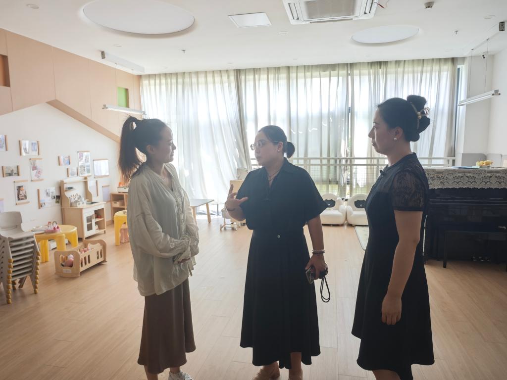 为进一步优化托班教育环境,提升托育服务质量,助力幼儿在适宜的环境中健康快乐成长,9月12日,苏州幼儿师范高等专科学校李荣博士受邀走进太仓市艺禾幼教中心南园幼儿园,围绕托班环境创设开展专项指导工作。太仓市艺禾幼教中心业务主任周乃璧、南园幼儿园园长陆晓绒、业务园长朱伊琳全程陪同。
