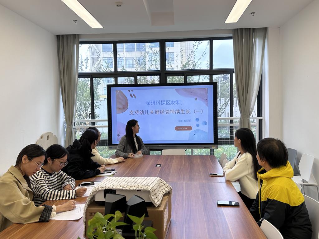 2025年 10月 23日,太仓市艺禾幼教中心南园幼儿园小班组开展了以“深研科探区材料,支持幼儿关键经验持续生长”为主题的教研活动, 聚焦于科学区“材料-玩法-核心经验”的链接上,初步制定本学期可开展的持续性游戏计划,以便教师在实际教学中运用、调整、再完善,有效促进幼儿相关科学核心经验的提升。