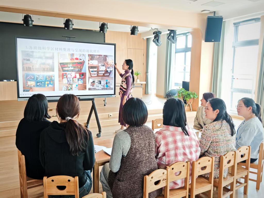 活动一开始,教师们通过观察各班级科学区现状照片,直面当前存在的材料整理与呈现方面的问题。随后,在理论学习中,教师们研读相关论文,汲取科学区环境优化的理论养分,并分享学习感悟。在案例学习环节,优秀案例的展示为教师们提供了宝贵的实践范例,激发了大家的创新思维。